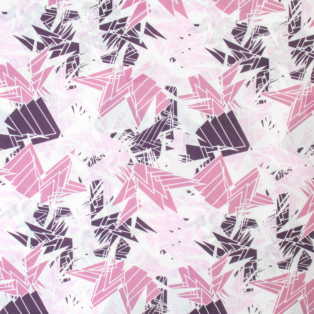 Crepe Abstract Geometric Print in Pink/White