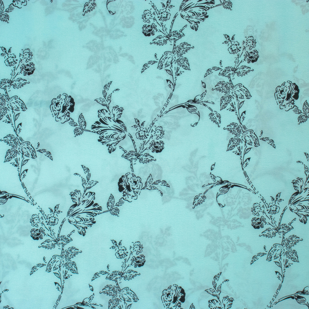 Crepe Floral Drawing Print in Turquoise